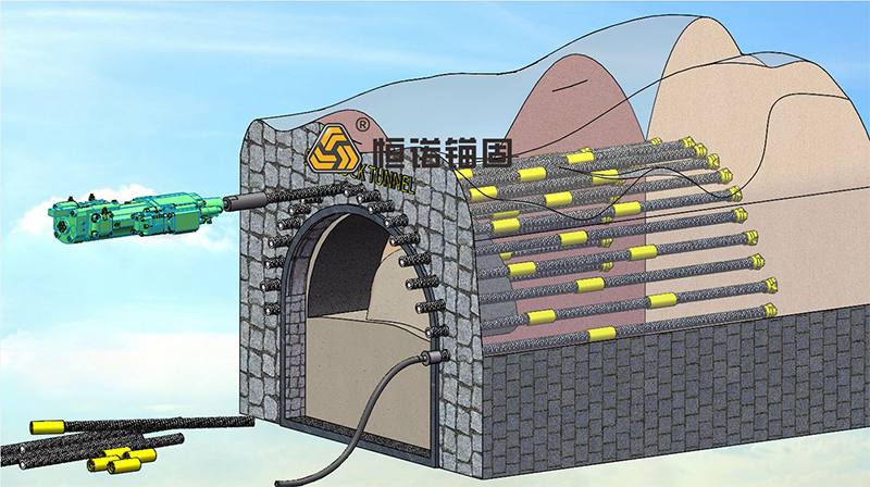 自鉆式錨桿在隧道及地下工程中主要用于隧道口管棚支護(hù)、超前管棚、超前支護(hù)、鎖腳支護(hù)、頂板支護(hù)、系統(tǒng)錨桿等項(xiàng)目。特別是在隧道掘進(jìn)中,遇到破碎圍巖,常規(guī)管棚難以施工,自進(jìn)式錨桿可作為管棚使用,施工效率高,綜合成本低。