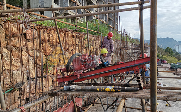 自鉆式錨桿施工技術是一種新型的錨固技術,該技術實現的關鍵是要有自鉆式錨桿施工設備,如鉆機。目前國內市場缺乏有效的自鉆式錨桿施工鉆機,針對此情況,恒諾投入大量人力財力,與業(yè)內廠家合作,經百余次應用現場調研及試驗,歷經一年時間研發(fā)出自鉆式錨桿專用鉆機,讓自鉆式錨桿施工效率更高。