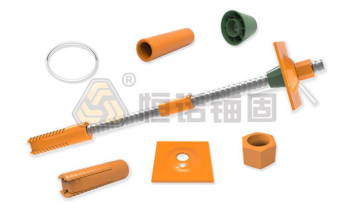 預應力中空錨桿根據錨桿端部固定型式不同,分為機械錨固和黏結錨固。機械錨固指對中空錨桿體施加預張拉力的錨桿,以漲殼錨頭作為錨固端、中空錨桿體作為受力桿件,且螺母和墊板作為受力配件的中空錨固系統。黏結錨固指以錨固劑黏結中空錨桿體及孔壁作為錨固端,中空錨桿體作為受力桿件,螺母和墊板作為受力配件的中空錨固系統。