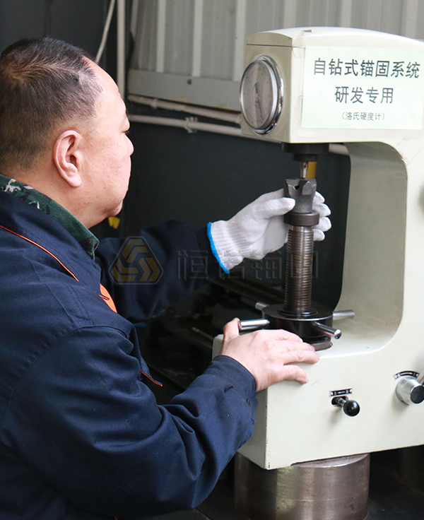 檢驗能力公司配置10余人的專業質檢團隊,為保證產品質量,我司特建立自鉆式中空錨固系統專用實驗室,配有40余種試驗設備和測量工具,如拉力試驗機、輪廓儀、沖擊試驗機、光譜儀、多種測量工具等,實現所有關鍵指標均可自主檢測。
